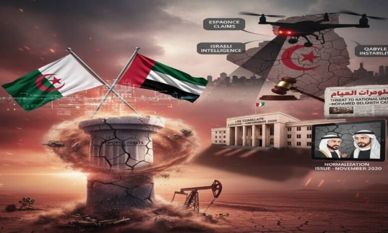 يظهر أن الجذور الاقتصادية للأزمة، المتمثلة في استعادة الجزائر لأصولها الاستثمارية (سبتمبر 2019)، سبقت تولي الرئيس تبون منصبه ومهدت لخلاف أعمق. أما أول خلاف ظهر إلى العلن فكان الصدام الجيوسياسي حول الأزمة الليبية في يونيو 2020. لكن التحول النوعي والأكثر حسما في العلاقة تمثل في افتتاح قنصلية الإمارات في العيون (نوفمبر 2020)، الذي أدخل الإمارات بشكل مباشر في صلب النزاع الوجودي الأهم للجزائر (الصحراء الغربية)، وهو ما أدى إلى تفعيل باقي الملفات المتوترة بشكل ممنهج، ورفع مستوى الصراع إلى مواجهة أمنية وجودية.
